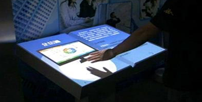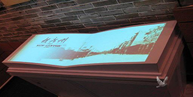 桌面上有一本翻開的虛擬圖書,當觀眾伸手做出翻書的動作時,會驚喜地發現這本虛擬圖書竟然真的可以翻頁,展示栩栩如生的動態翻頁效果并伴有音效。具有較好的互動性,是展廳多媒體內容展示的高科技產品。