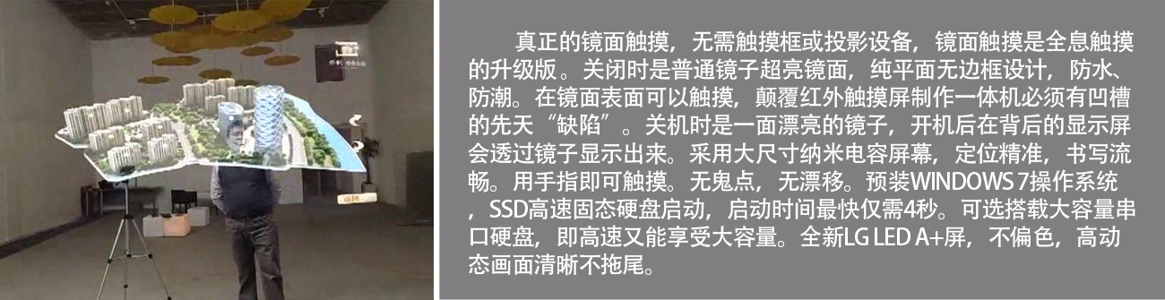 遠遠看起來明明是一面鏡子,但是走進之后,突然間,鏡子居然開始出現圖像和文字,用手觸摸,還會隨心意自由轉換畫面。神奇的效果,意外的心理,挑逗內心的好奇。這到底是什么高科技?